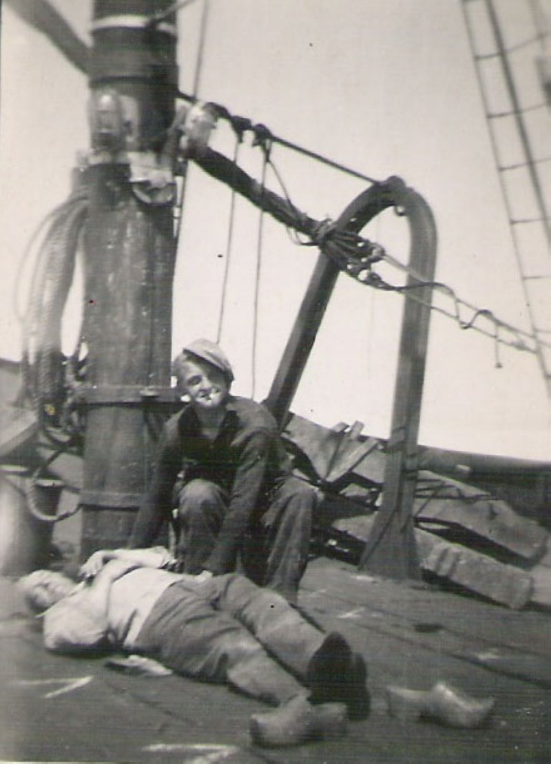 Achter hem (Languit een bakje op Grin Grin) z,n vader Klaas Tuinebrijer(Zie en aanschouw Grin Grin)