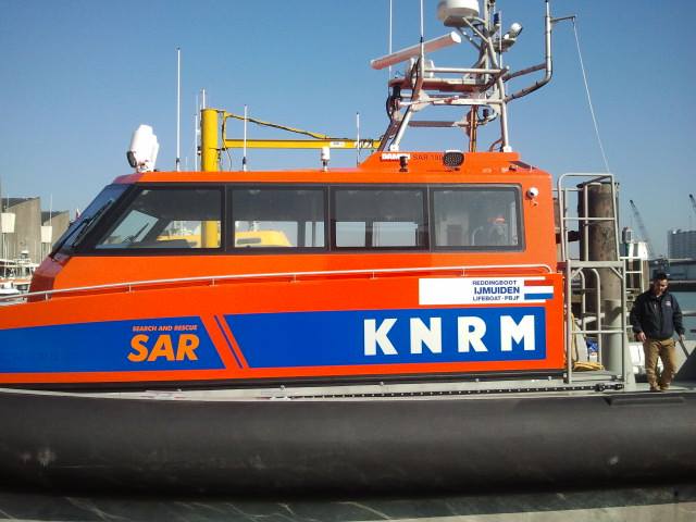 De nieuwe reddingsboot van Ijmuiden de NH1816 zojuist binnen in Scheveningen.